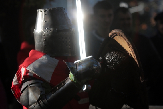 14 октября в День защитника Украины во Львове происходили рыцарские бои. В поединках участвовали энтузиасты из Львова и Мукачева. Напротив облгосадминистрации организаторы обустроили ристалище четырехугольной формы. Мужчины в рыцарских доспехах соревновались между собой один на один.