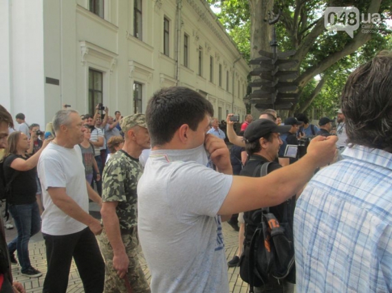 Под стенами одесской мэрии проходит пикет. Активисты попытались пройти в здание горсовета и попасть на сессию. Их остановили сотрудники муниципальной службы охраны, сообщает "048".
