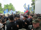 Пока активисты пытались прорвать кордон, патрульные "вырвали" из толпы одного активиста. Это еще больше разозлило недовольных. Разъяренные граждане прогнали патрульных полицейских из центральной части Думской площади.