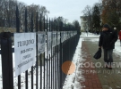 На заборе монумента Славы в Полтаве развесили несколько десятков фотографий, на которых изображены жертвы Голодомора 1932-1933 гг.
