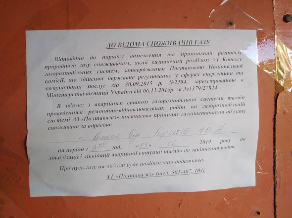 По словам людей, на прошлой неделе на подъездах домов появились объявления от службы Полтавагаза. В них сообщалось, что будут проводить техническое обслуживание газовой сети домов. О счётчиках — ни слова.