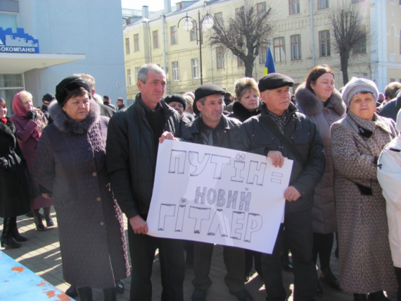 10 марта в 12:00 несколько тысяч митингующих собираются на Винницком Майдане, чтобы пройтись по улицам с призывами к миру. В руках люди держат плакаты с обращениями к Путину, стихами Тараса Шевченко. Колонна отправляется с Майдана - площади Театральной - до площади Европейской. Впереди руководство области, депутаты. К ним присоединяются заместители губернатора, которые еще месяц назад были в Партии регионов.