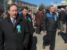 "Ты смотри, как поменяли фуражки, уже к новой власти пристроились, в первых рядах хотят идти. Не пустим, хотите идти с нами - становитесь где-то сзади, чтобы вас никто не видел", - кричат две женщины с плакатами и не пускают бывших "регионалов".