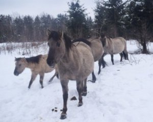 Потомки дикой лошади - тарпана завезены к нам из Розточанского национального природного парка (Республика Польша). Несмотря на мороз насладиться общением с животными и полюбоваться заснеженным заповедником Расточье съезжаются желающие со всей Львовщины.