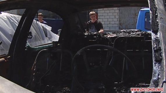 "Это случилось около 3 ночи. Слышу - взрыв. Такой сильный взрыв. Я выбежал на улицу - машина горит. Я за ведро воды, пока набрал, думаю, затушу, а оно еще больше начало гореть. Начала вторая, третья машина гореть. И весь результат. Говорила какая-то женщина, что видела будто двое мужчин перелезали через забор. Правда это или нет, не могу утверждать. Я не видел", - рассказал охранник Леонид Яремчук. Об этом пишет сайт "Житомир Инфо".