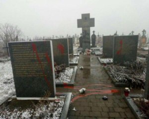 По ее словам, "почерк" вандалов был таким же, как и на мемориале во Львове: памятники облили красной краской, а на центральном кресте написали "Смерть ляхам".