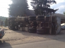 Грузовик с зерном перевернулся на припаркованный "ВАЗ". Авария произошла в поселке Мурованые-Куриловці Винницкой области.