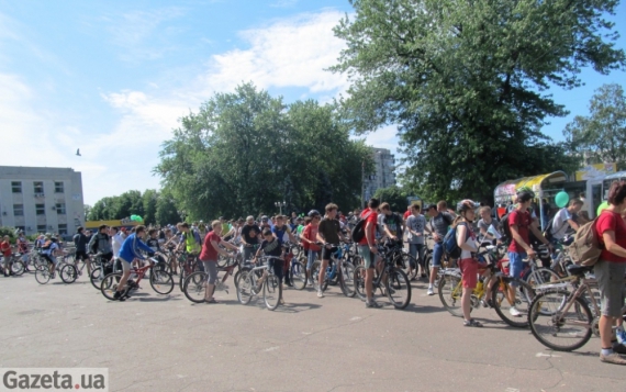 С 9.00 на площади 700-летия Черкасс собираются велосипедисты. Через два часа они занимают всю площадь. Многие велорайдеров приезжают с детьми. Среди любителей двухколесных немало женщин.