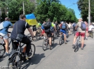 Более трехсот участников собрал сегодня ежегодный велопарад "Велодень" в Черкассах. Любители езды на велосипедах проехали колонной по центральной улице города.