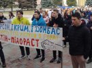 Люди также скандировали: "Новотроицкое - это Украина!, Украина превыше всего!".
