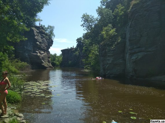 "Про Буцкий каньон слышали давно и несколько лет хотели уехать, но все не получалось. Приехали с группой. Нас привезли в час дня, через 4 часа заберут. С человека заплатили 470 гривен. У воды немного легче, а вот вверху у скал - жара невероятная. Побудем здесь немного и пойдем дальше. Говорят, дальше есть мелководное место, где вода бурлит, как в джакузи", - говорит Наталья.