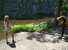 У лестницы местный гид Василий Сологуб заканчивает экскурсию для туристов из Киева. Имеет выгоревшие волосы. Через плечо перекинул поясную сумку. Водит туристов вдоль всего каньона. Экскурсия начинается от плотины и заканчивается на месте, которое называют "букський стоунхендж".