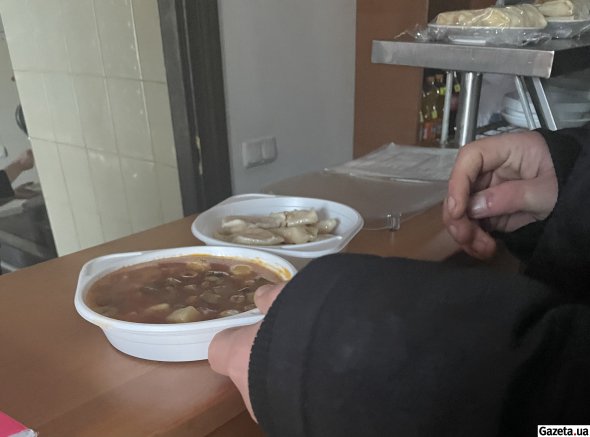 Меню в Лавре постное, потому что как раз недавно начался Рождественский пост. Порцию борща или солянки можно купить за 100 грн, вареники с картофелем или капустой стоят по 50 грн за девять штук. Подают блюда в пластиковой посуде. Кофе и чай здесь тоже не готовят из-за отсутствия света.