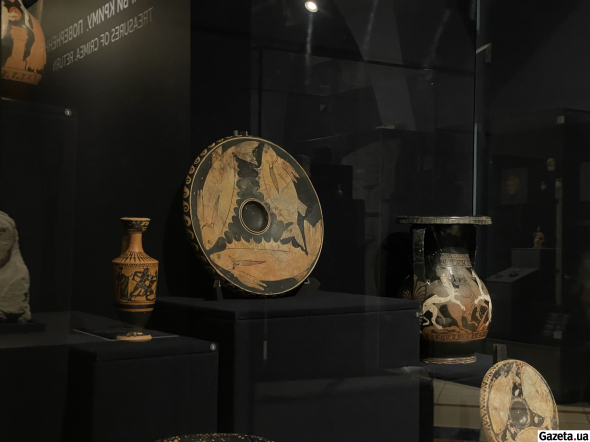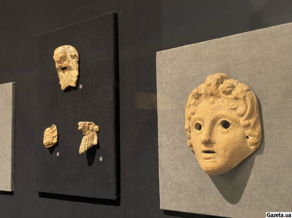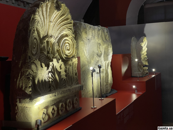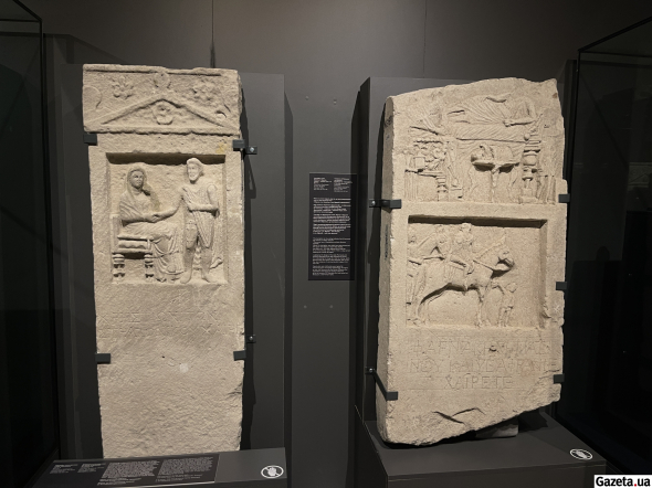 Центром экспозиции первого зала являются каменные акротерии - архитектурные детали зданий или погребальных стел. А также один рельеф, сделанный из мрамора. Его нашли на территории Таманского полуострова (современная Россия. - Gazeta.ua) в конце XIX века и датируют временами Боспорского царства, когда столицей там был Пантикапей (современная Керчь. - Gazeta.ua).