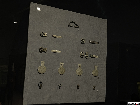 - Интересно, что большинство найденных артефактов, таких как золотые накладки на глаза и рот, погребальные венки - изготовлялись исключительно для захоронения и не использовались при жизни. Их фольга настолько тонкая, что она сильно повреждена из-за времени и веса грунта. Это подтверждает, что эти вещи имели преимущественно символическое значение, хотя и производились из настоящего золота, - рассказывает куратор. - По сравнению с вещами для повседневного использования, которые были крепкими и добротными, погребальные украшения изготовлялись из тонкого материала и не предназначались для длительного использования.
