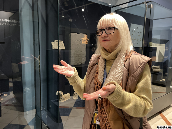 Среди ее любимых экспонатов - знаменитая скифская пектораль, чехол на окна с греческими сюжетами, а также изделия из песчаника, которых в музее раньше почти не было.