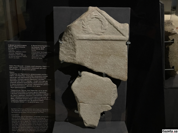 - Есть декрет, посвященный историку, который родился и работал в Херсонесе. Хотя его произведения не сохранились, о его заслугах свидетельствуют обломки мраморных плит, найденные среди развалин. Считается, что его также наградили золотым венком, поскольку его изобразили на декрете, - рассказывает Оксана Лифантий.