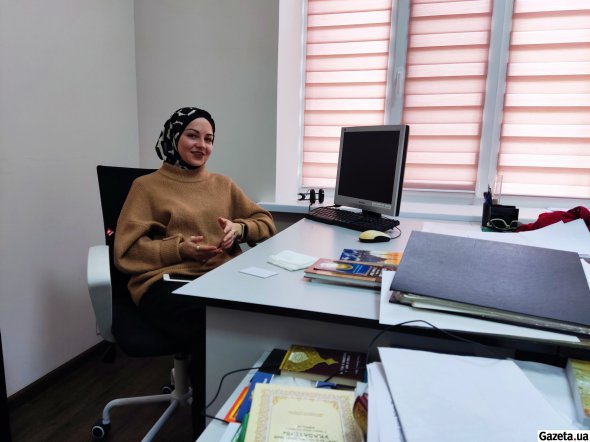 Встречаемся в ее офисе, вблизи метро Шулявская. Женщина на каблуках и в хиджабе. В руках iPhone. Мне постоянно пишут беженцы, объясняет.