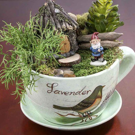 Растения можно выращивать не только в горшках, но и в чашках. В них удобно сделать целый сад. Правда, миниатюрный.