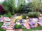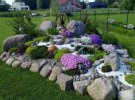 Альпинарий или альпийская горка является ярким украшением сада. Ее надо закладывать осенью. Для этого выбрать участки, насыпать грунт нужных размеров и разложить камни.