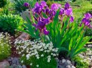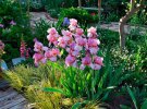 1. В этой клумбе ирисов следует объединить сорта различных размеров и времени цветения. Самые высокие вырастают до метра. Они идеально подходят для формирования задних планов или сложных цветочных композиций. эффектно смотрятся на фоне туй или можжевельников.