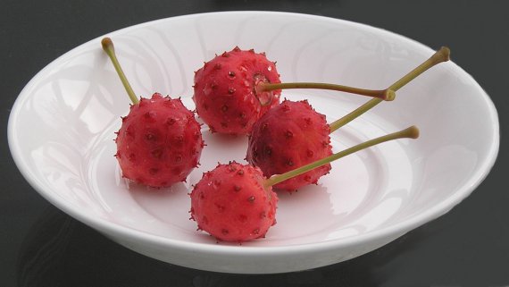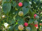 Новинкой в украинских садах есть кизил коуза или земляничный. На дереве растут красные плоды подобные вишни, но колючие. Созревают в сентябре, за это их называют осенней земляникой.