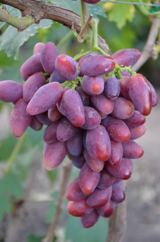 Виноградины по 18-20 г каждая. Не трескаются при созревании. Гроздья весят 1,5 кг.