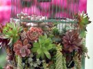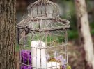 Поместить в клетку можно как горшечные растения, так и букеты сорванных цветов. Особого шарма придадут свечи.