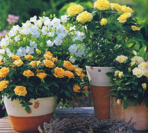 Карликовые розы вырастают высотой 20-30 см. Цветут небольшими соцветиями. Можно выращивать на балконе, веранде или в цветнике. Можно обсаживать ими бордюры или альпийские горки.