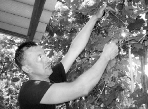 У винничанина 45-летнего Виктора Гоменюка созревает белый виноград сортов Плевен и Руслен. Листья обрывает над гроздьями, чтобы на них попадали лучи солнца. Говорит, ягоды от этого становятся более сахарными.