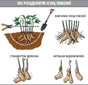 - Пересаживаю кустики из части корня, минимум трех почек и нескольких здоровых корешков. Если кусты меньше или больше, у них хуже образуются новые корневища. Тогда пион почти не растет.