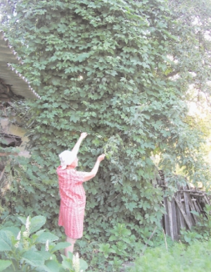 — Воюю еще с хмелем. Он вроде и декоративный, но у него колючий стебель. Разрастается что в земле, что сверху. Заплетает плодовые кусты и деревья. Душит их, они потом усыхают. Не удается выкопать корни хмеля, они длинные и разветвленные. Восстанавливается с щепки. Лианы срезаю, потому что быстро разрастаются. Царапают руки, вызывают ожоги от сока и аллергию.