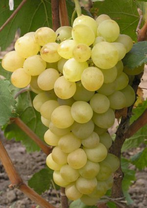 Восторг созревает в начале августа. Кисти конической формы, вырастают до 2 кг. Ягоды овальные, белые, с румянцем на солнечной стороне.