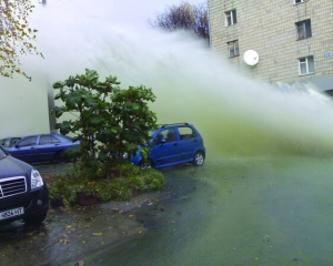 — Да что там от тех автомобилей осталось, когда здесь летали глыбы камней, — говорит 40-летний Алексей Томусяк со строительной компании "ВиМ-Украина". Ее офис находится недалеко от места разрыва. — Здесь стояла машина моего друга. Уцелело только лобовое стекло и передние фары. Все остальное побито, салон полон воды и камней. Такой грохот стоял, как вулкан. Кипятком залило всю улицу, шел пар. Ничего не видно. Окна балконов на четвертом и шестом этаже разлетелись. У наших соседей офис затопило. К нам вода чудом не дошла.