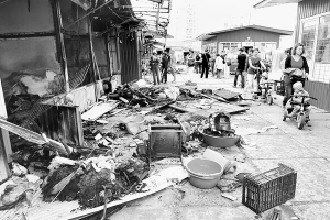 Утром 15 августа рынок огражден красной лентой. Большинство посетителей толпятся возле пожарища. Там выгорели прилавки, в крыше видно дыры. Вокруг валяются остатки гладильных досок, бытовой техники.