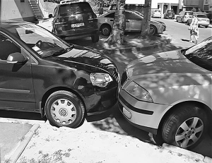 Грохот и вой автомобильных сигнализаций услышали утром 28 августа жители столичной многоэтажки по ул. Ивана Пулюя, 1. Во дворе джип "Митцубиси Паджеро" таранил другие легковушки.
