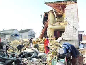 — Я здесь толком не жил. Делал видимость, что ночую, чтобы не обворовали. Сегодня проснулся, пошел умываться. Помню, открутил кран с горячей водой. Через минуту дом словно подбросило. Все затряслось. Такой был шум, как будто небо упало мне на дом. Я сначала лег и накрыл голову руками. Когда утихло, начал выходить. Дальше вы сами все видите, — Олег Мороз на вид спокоен. — Думаю, взорвался баллон в подвале. Я им прогревал свою "шкоду". Наверно, он пропускал газ. Там же в подвале стоит насосная станция, которая воду качает из колодца. Когда я открутил воду, включился насос. Искра подожгла газ.