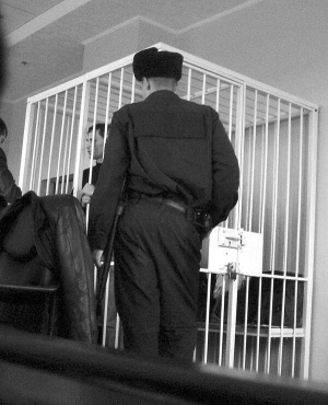 Третий пострадавший — 38-летний Александр Дубовик также приехал под стражей, потому что сидит в следственном изоляторе. Его обвиняют в торговле наркотиками. Он — единственный, кто сознается, что оговорил милиционеров: