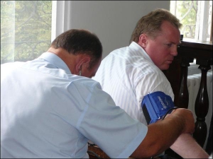 За полуторачасовое слушание подсудимый глотает три таблетки, запивая их "Боржоми". Врач время от времени меряет ему давление, что-то спрашивает. Лицо Ризака наливается кровью. Его брат часто разговаривает по мобильному телефону. Судья Надежда Стефанив просит собравшихся вести себя тише. Наконец берет несколько листов и зачитывает решение.
