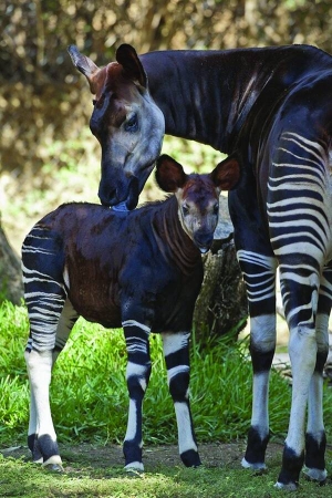 Самым пугливым животным считают окапи. Напоминает коня и жирафа. Имеет полосы, как у зебры.