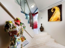 Особняк представлен двумя спальнями, кабинетом, винным погребом и просторной гостиной зоной открытого плана, а функциональность и комфорт стоят на первом месте. Резиденция оформлена в нейтральной цветовой гамме, умело разбавленной неожиданными акцентами. Мраморные полы, белые стены, металлические детали и элегантные предметы мебели украшают особняк, создавая необычайно расслабляющую атмосферу.
