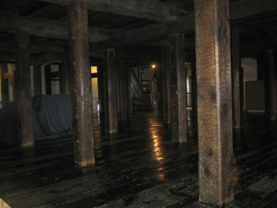 В замке очень низкие потолки и старинная лестница, ведущая к залам, в которых выставлены на показ броня и оружие периода Сенгоку .