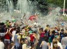 Суть развлечения заключается в том, что разделившиеся на две команды молодые люди обливают друг друга водой, периодически залезая в этот самый фонтан и сбрасывая туда соперников.