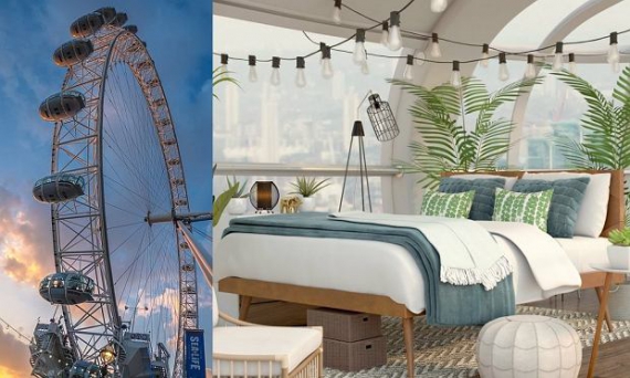 Колесо London Eye был открыт в 2000 году. С тех пор на нем покатались 50 млн человек. Теперь строители аттракциона решили принести оригинальность в процесс катания. Переночевать в двухместном номере в капсуле карусели смогут победители конкурса, который организовала одна из компаний по изготовлению мебели.