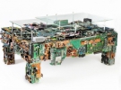 Американский дизайнер Бенджамин Роллинз Колдуэл воплотил разработал целую линейку мебели, при создании которой он использовал исключительно вышедшие из строя детали компьютерной техники и электронных бытовых приборов.