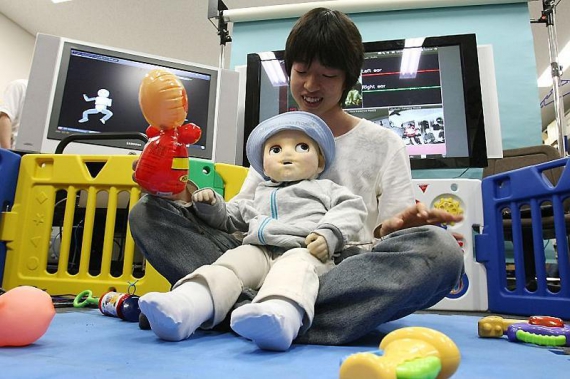 Робот-младенец дает возможность наблюдать за тем, как у 9-месячного младенца стремительно развиваются умение двигаться и узнавать окружающий мир, а также к чему он проявляет интерес.