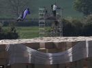 На Гарри был специальный костюм, имитирующий крылья. Кроме того, на земле были размещены примерно 20 тыс. картонных коробок, на которые Коннери должен был приземлиться.