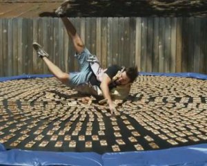 В свежем видео британцы решили рискнуть здоровьем. Один из парней прыгнул на батут с тысячей заряженных мышеловок. Ролик набрал почти 6 млн просмотров.