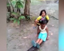 Пользователей сети поразило видео, как две девочки катаются на спине гигантского питона в Индонезии.