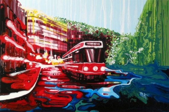 Канадская художница Эми Шеклтон создает картины, прорисованные до мельчайших деталей, не используя при этом ни кисть, ни пальцы. Вместо традиционных способов рисования она полагается лишь на силу тяжести, которую сама направляет в ту или иную сторону холста.